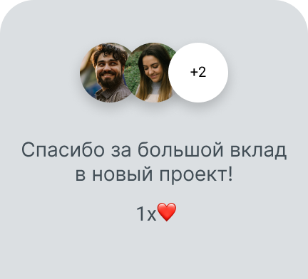 Механика «Спасибо» позволяет любому члену команды публично поблагодарить коллегу, а также снабдить тёплые слова баллами в виртуальной валюте.